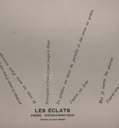 Alors que les formes de poésie visuelle et sonore sont l’objet de nombreuses recherches en littérature, spécialement à l’ENS, un retour sur la revue SIC apparaît une juste remise en lumière de la création de Pierre et Germaine Albert-Birot.