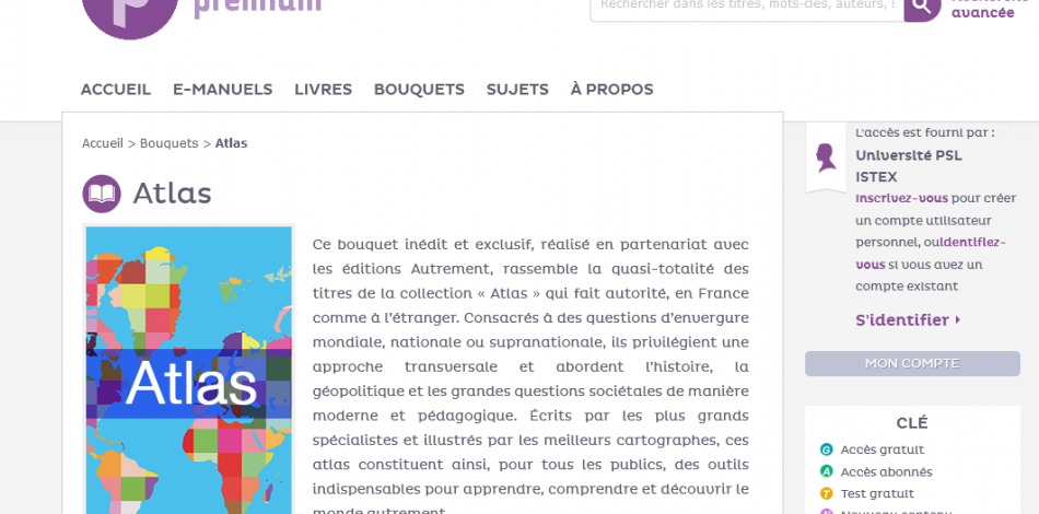 Nouveauté : les 103 atlas de la collection "Atlas" des éditions Autrement en accès distant sur Numérique Premium, la plateforme d'e-books en Sciences humaines et Sociales à consulter et lire depuis votre bibliothèque et à distance !